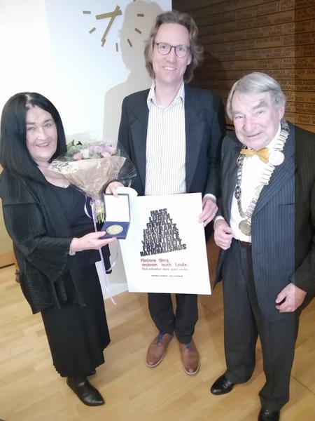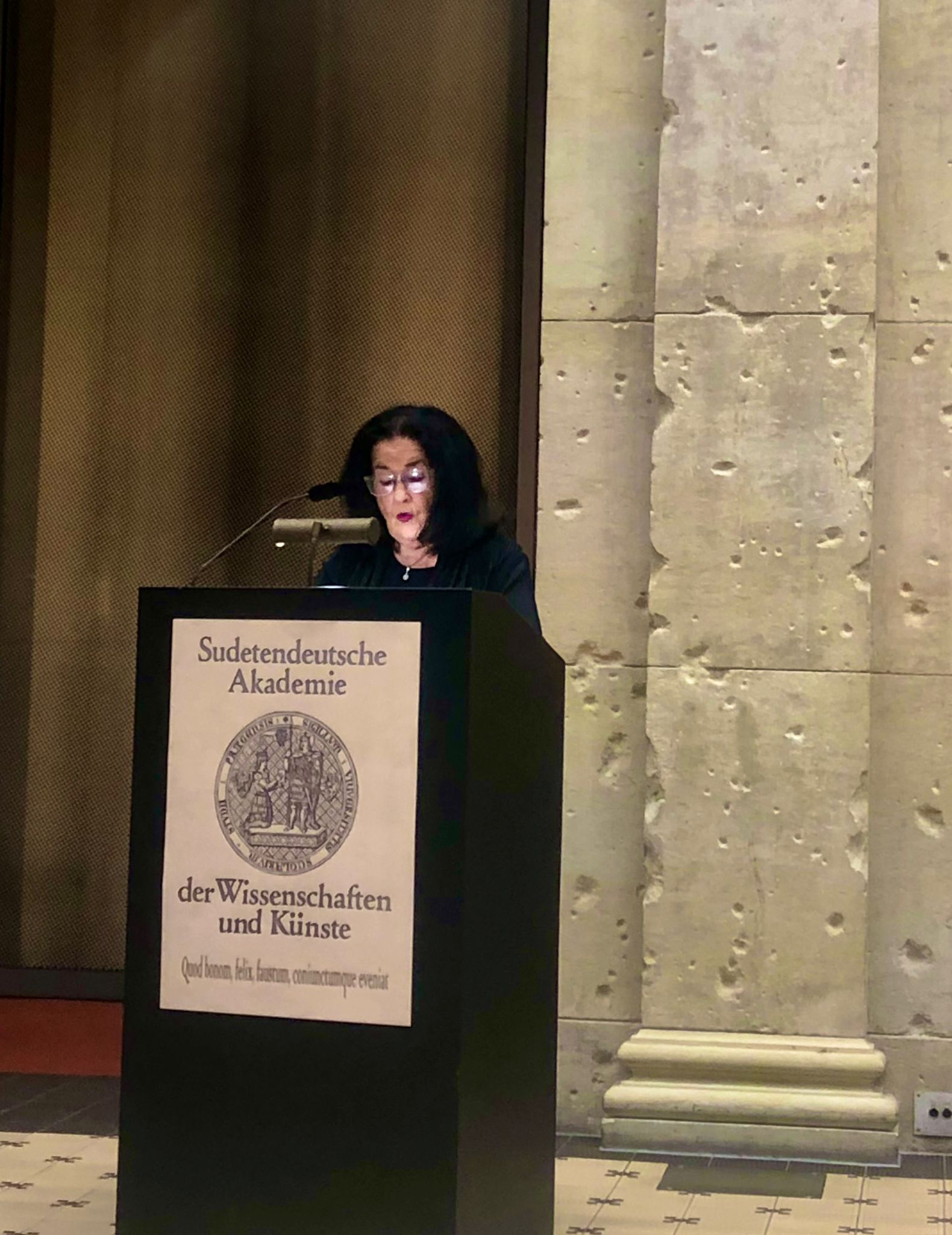 Der tschechische Botschafter bekommt die Urzidil Medaille vom Präsidenten prof Stefan Sameski beliehen. Ich Tage mein poetisches Memoire über Johannes Urzidil bei dem Festakt vor.